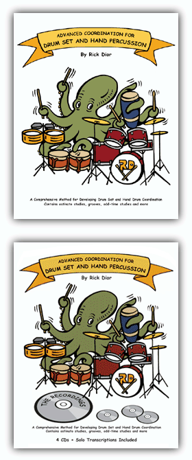 NOW AVAILABLE: These recordings are a MUST for anyone studying the book. Please contact me at rickdior @ carolina.rr.com if you are interested. Here are some ostinato solos from the new CD recordings of my book Advanced Coordination for Drum Set and Hand Percussion. These solos are transcribed in Version 3 of the book and are also included with the 4 CD Set.