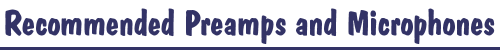 These are all microphones and preamps that I have had positive experiences with. There are obviously many others suitable for these applications so never hesitate to experiment. The mic's are listed in no particular order.